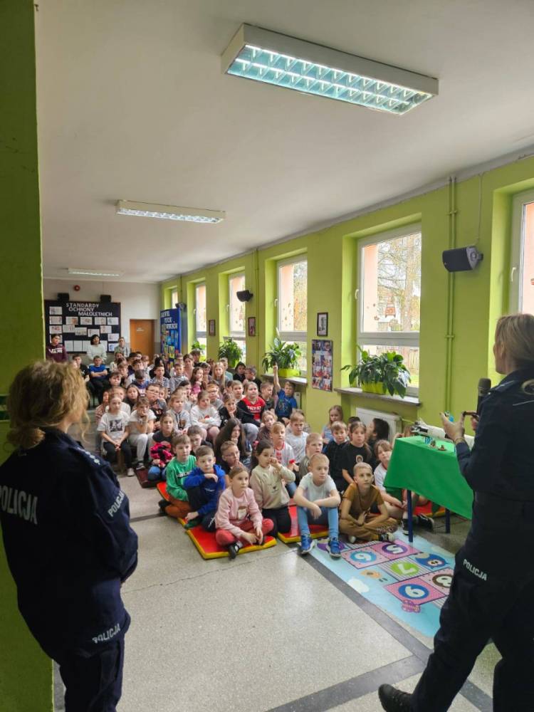 Dbając o bezpieczeństwo naszych uczniów w czasie zbliżających się ferii zimowych zorganizowano spotkanie profilaktyczno-edukacyjne z funkcjonariuszkami policji.