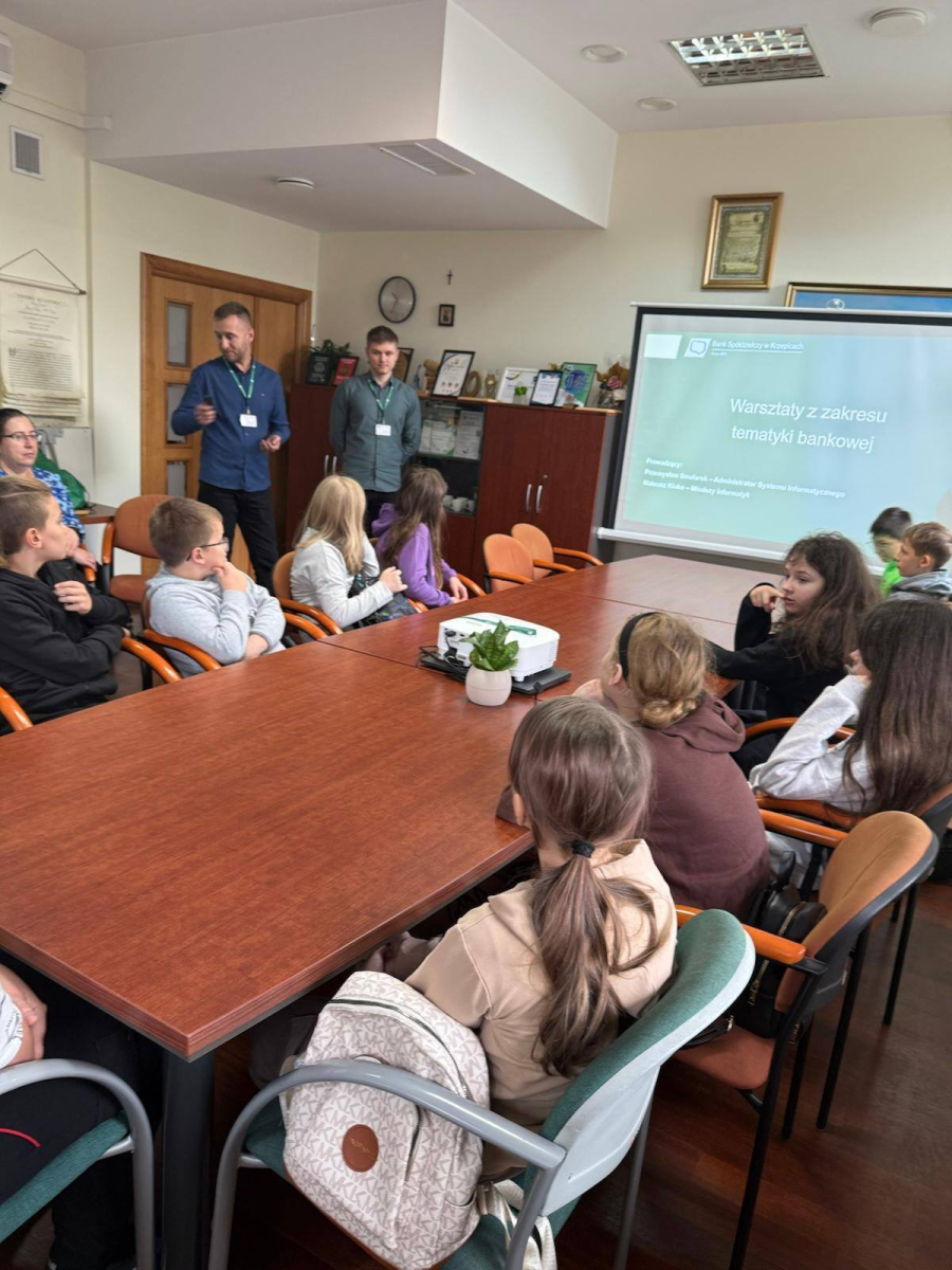 Pierwszym punktem programu były warsztaty bankowości w Banku Spółdzielczym, podczas których dowiedzieliśmy się, jak działa bank, czym jest oszczędzanie i jak bezpiecznie zarządzać pieniędzmi. To było naprawdę ciekawe i pouczające doświadczenie!