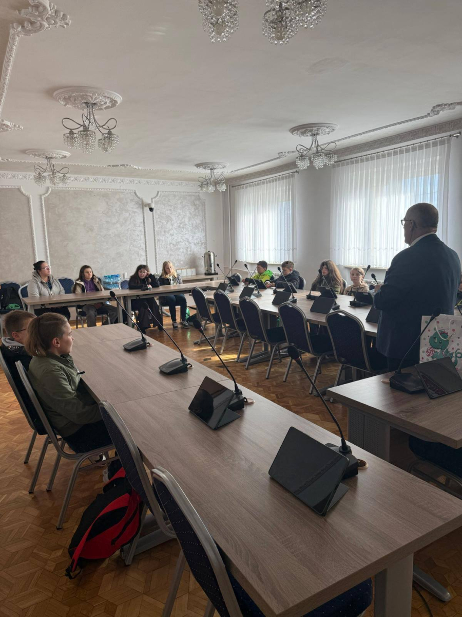 Następnie odwiedziliśmy Pana Burmistrza, który opowiedział nam o pracy w urzędzie i o tym, jak podejmowane są decyzje ważne dla naszej gminy.