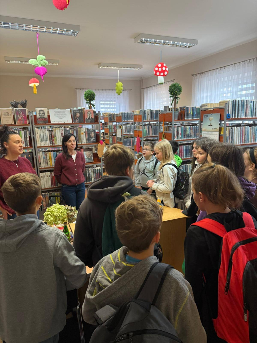Na zakończenie udaliśmy się do Gminnej Biblioteki, gdzie poznaliśmy tajniki pracy bibliotekarza i zobaczyliśmy, jak wiele ciekawych zadań kryje się za regałami pełnymi książek.