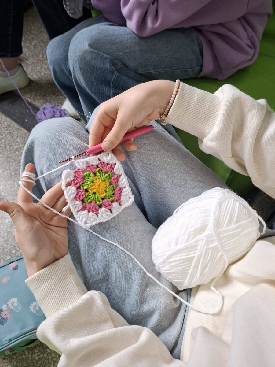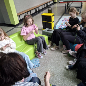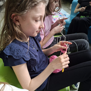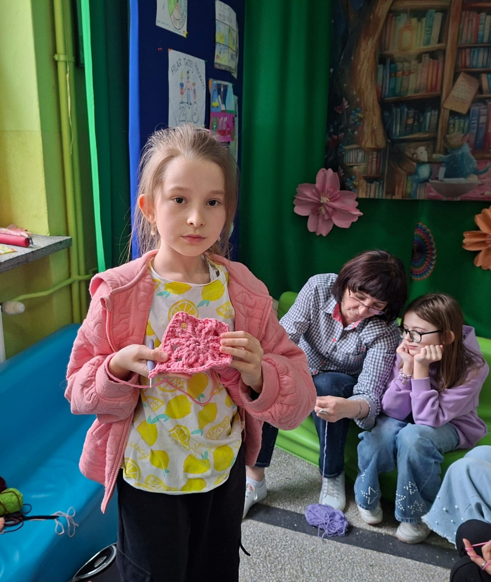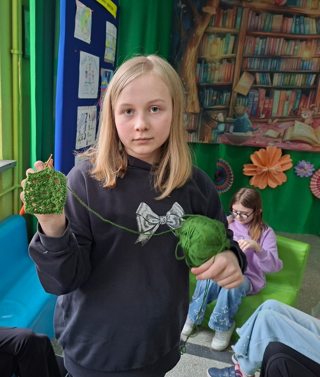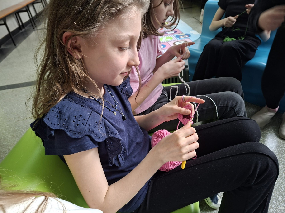 24. 03. 2025r. Na dzisiejszych zajęciach z szydełkowania dziewczynki z klasy czwartej i piątej doskonaliły swoje umiejętności. Zaczynając od łańcuszka, przeszły do słupków pojedynczych i podwójnych, z których powstawały kolorowe kwadraty z motywem mandali. Nie obyło się bez liczenia, jednak dziewczęta z cierpliwością i zaangażowaniem dążyły do osiągnięcia jak najlepszych efektów.