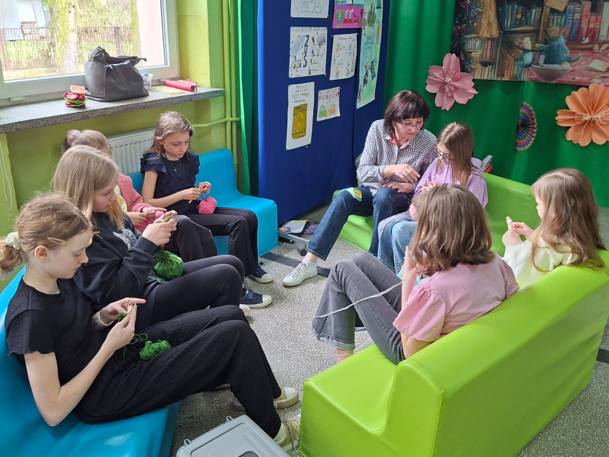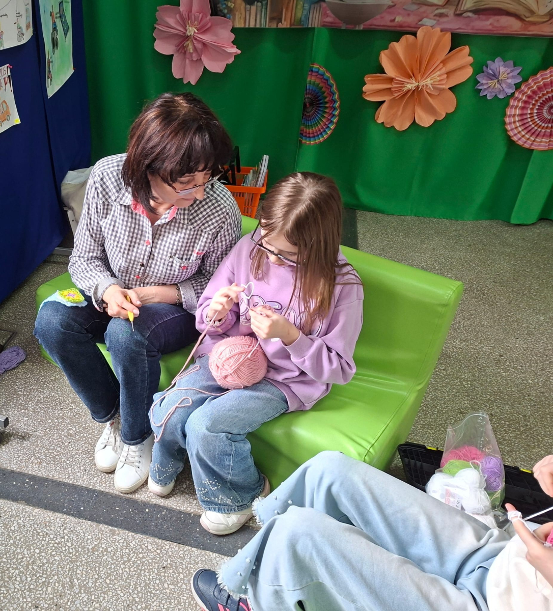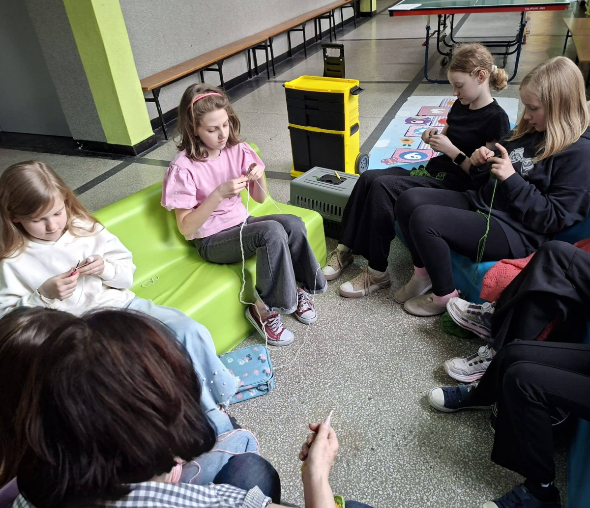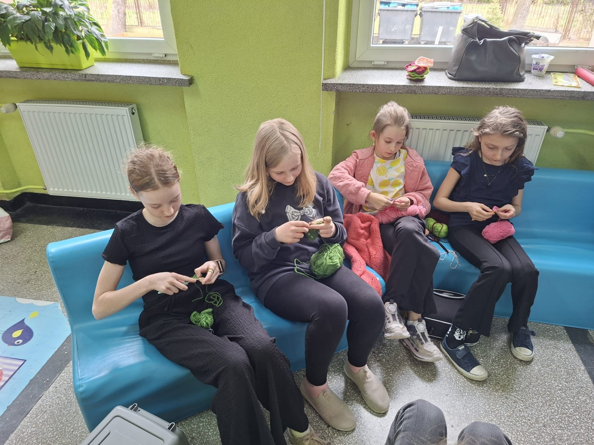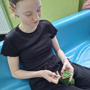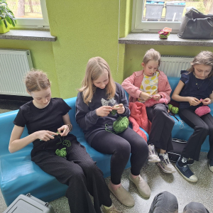 24. 03. 2025r. Na dzisiejszych zajęciach z szydełkowania dziewczynki z klasy czwartej i piątej doskonaliły swoje umiejętności. Zaczynając od łańcuszka, przeszły do słupków pojedynczych i podwójnych, z których powstawały kolorowe kwadraty z motywem mandali. Nie obyło się bez liczenia, jednak dziewczęta z cierpliwością i zaangażowaniem dążyły do osiągnięcia jak najlepszych efektów.
