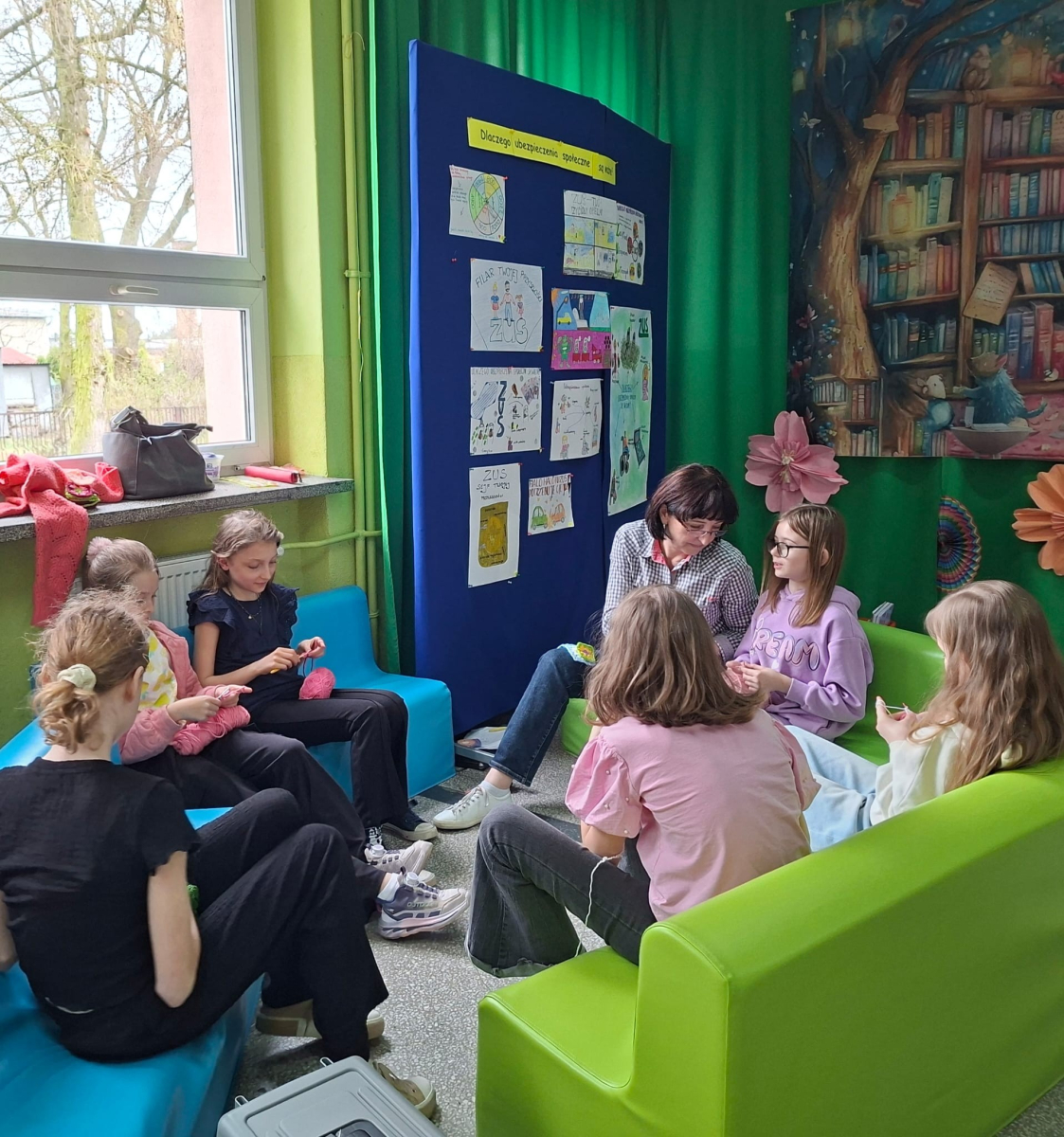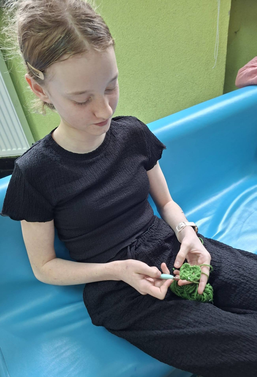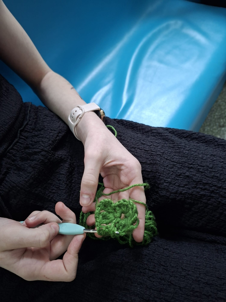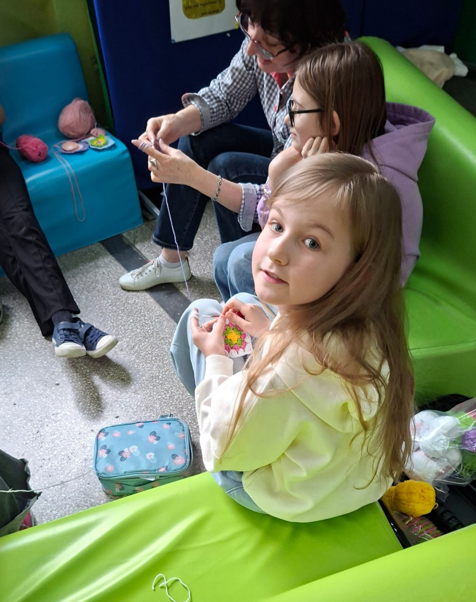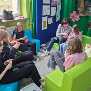 24. 03. 2025r. Na dzisiejszych zajęciach z szydełkowania dziewczynki z klasy czwartej i piątej doskonaliły swoje umiejętności. Zaczynając od łańcuszka, przeszły do słupków pojedynczych i podwójnych, z których powstawały kolorowe kwadraty z motywem mandali. Nie obyło się bez liczenia, jednak dziewczęta z cierpliwością i zaangażowaniem dążyły do osiągnięcia jak najlepszych efektów.