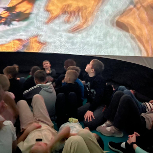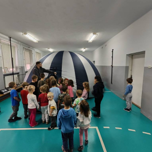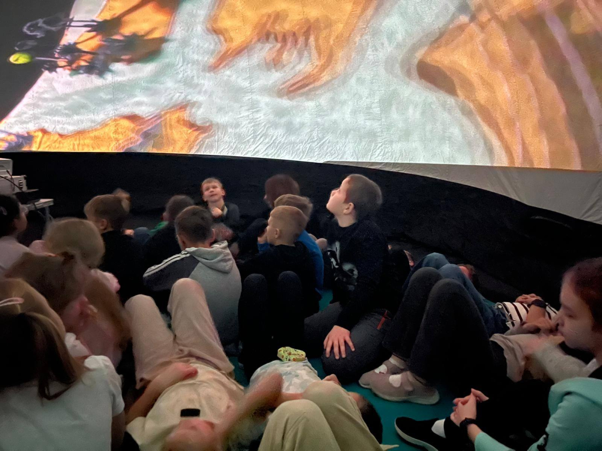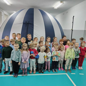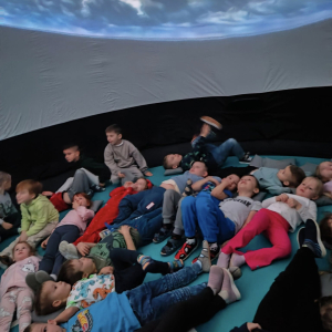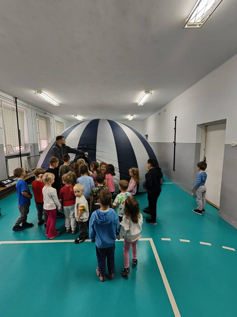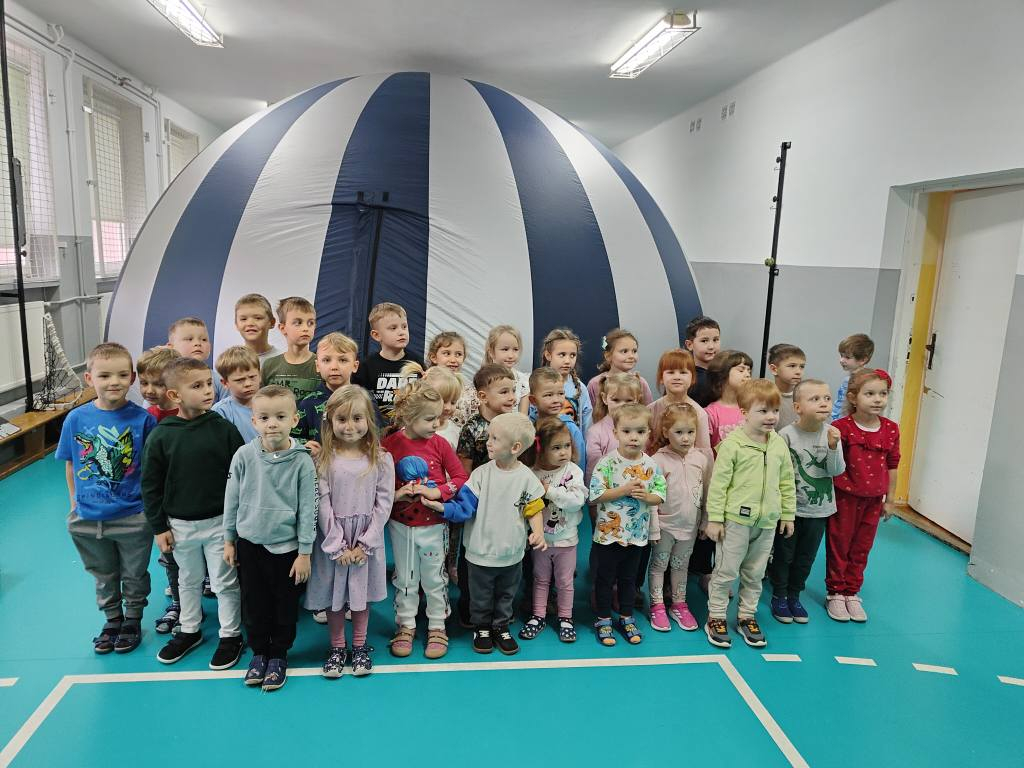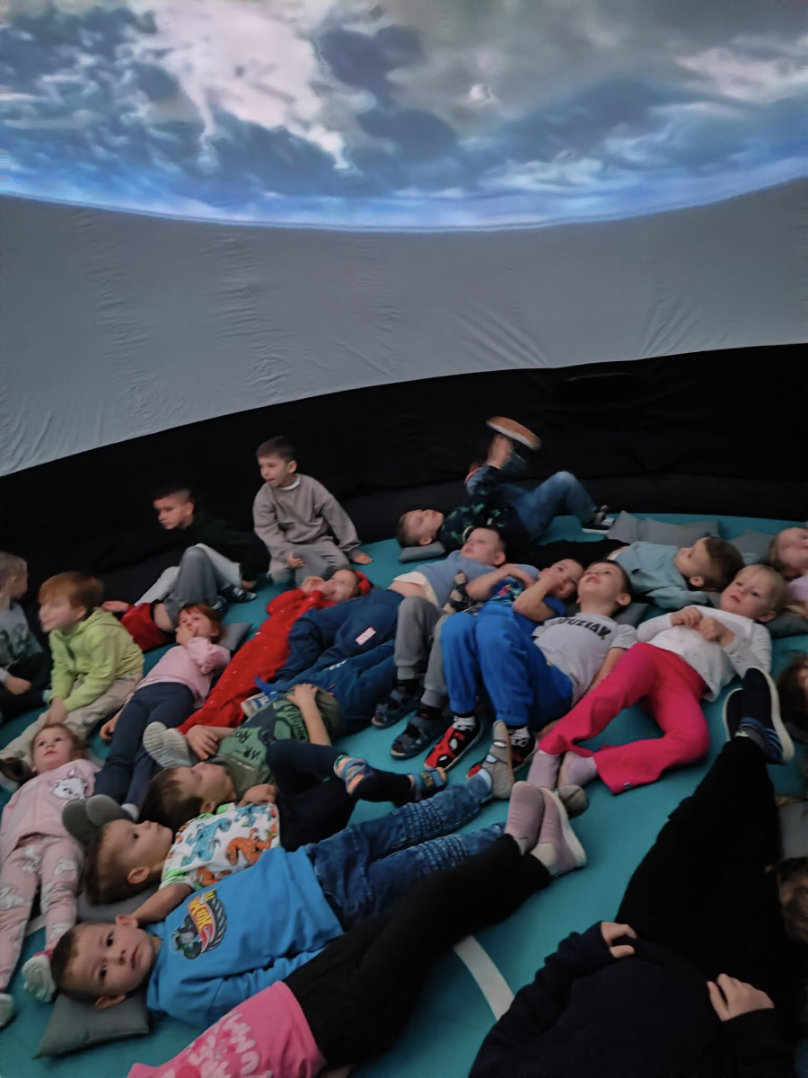 Dnia 25 listopada naszą szkołę odwiedziło Mobilne Planetarium Orbitek, które przeniosło nasze przedszkolaki i uczniów klas 1-3 w fascynujący i cudowny świat dinozaurów. Wielką atrakcją było już samo wejście do wielkiej nadmuchanej kopuły, w której za pomocą projektora wyświetlane były obrazy i filmy. Dzieci odbyły podróż do czasów, gdy po Ziemi stąpały prehistoryczne dinozaury. Zobaczyły jak zwierzęta zmieniały się przez miliony lat, tworząc różne fascynujące stworzenia. Wielkim przeżyciem było spotkanie z „żywym” dinozaurem o imieniu Tosia, którego dzieci mogły przytulić i pogłaskać. Ten interaktywny gad ryczał, mrugał oczami i nawet poruszał paszczą. To była niezapomniana przygoda. Pokaz dostarczył wszystkim wiele niezapomnianych wrażeń i na pewno pozostanie w naszej pamięci jako wyjątkowe doświadczenie.