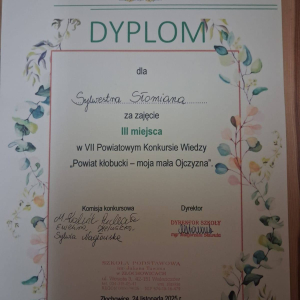 Naszą szkołę reprezentowali uczniowie z klasy VII: Lena Włodarczyk i Sylwester Słomian, którzy osiągnęli bardzo dobre wyniki zajmując miejsca na podium.