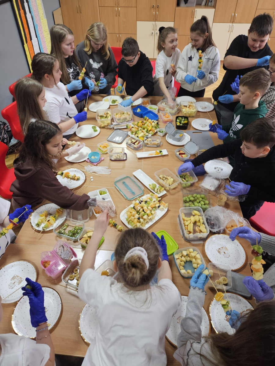 6 lutego 2026 r. w naszej szkole odbyły się warsztaty promujące zdrowe odżywianie oraz aktywność fizyczną. W wydarzeniu wzięli udział uczniowie klas I–V oraz przedszkolaki. Podczas zajęć dzieci samodzielnie przygotowywały i degustowały zdrowe przekąski, kanapki oraz soki. Przygotowały również kolorowe plakaty zachęcające do ruchu i dbania o prawidłowe nawyki żywieniowe. Celem spotkania było pokazanie najmłodszym, że zdrowy styl życia może być ciekawy, smaczny i pełen radości. Dużą atrakcją było spotkanie z Chrumasem oraz gadżety, które dzieci otrzymały na pamiątkę. Dziękujemy wszystkim uczniom za aktywny udział oraz osobom zaangażowanym w organizację wydarzenia, a w szczególności Pani Sołtys Magdalenie Pilarz.