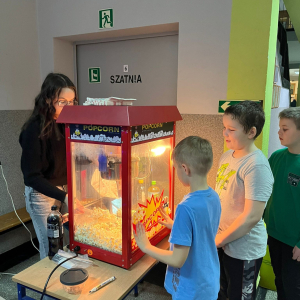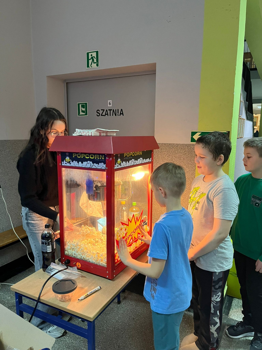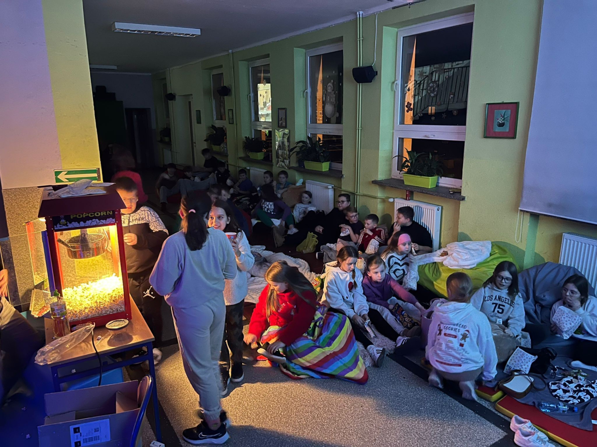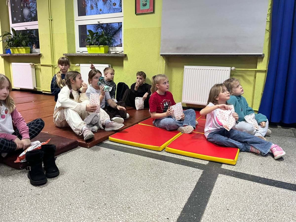 16 grudnia z inicjatywy Samorządu Uczniowskiego, w naszej szkole odbył się wyjątkowy świąteczny wieczór filmowy. Uczniowie spędzili ten czas w miłej, świątecznej atmosferze. Klasy I–III obejrzały film „Tamte święta”, natomiast klasy IV–VIII wzruszającą opowieść „Śnieżna siostra”. Nie mogło oczywiście zabraknąć czegoś pysznego – przewodnicząca Samorządu Uczniowskiego - Zuzia serwowała wszystkim popcorn. Dziękujemy za wspólnie spędzony czas i stworzenie cudownej, świątecznej atmosfery.