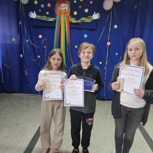 Wyróżnienie: Aleksander Kuna (klasa I), Marcel Lipiski (klasa II), Franciszek Wydmuch (klasa II), Maciej Bukalski (klasa II), Zofia Grudzka (klasa II), Zuzanna Adamczyk (klasa III), Natalia Leszczyna (klasa III),