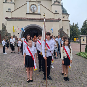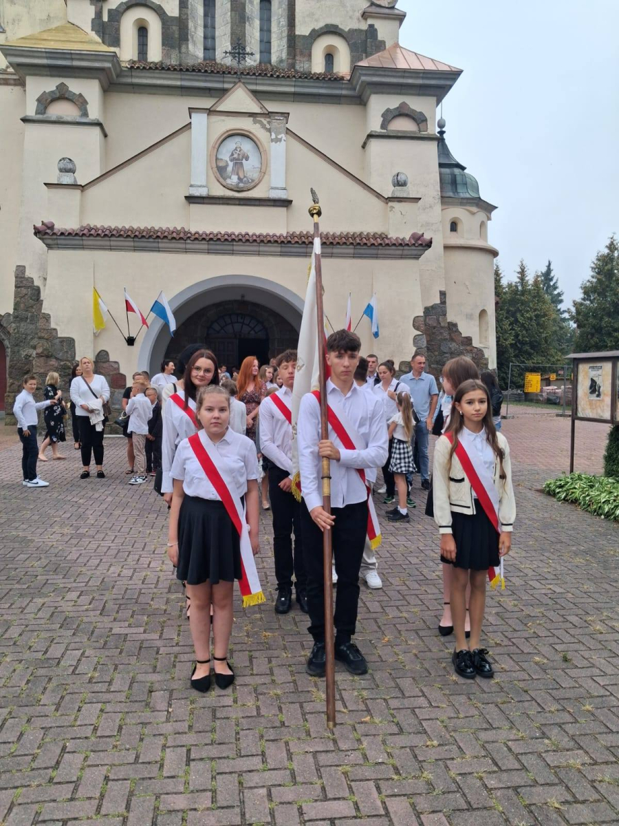 1 września 2025r. uczniowie wraz z rodzicami i nauczycielami uczestniczyli we Mszy Świętej, po której udali się do szkoły. Tam odbyła się uroczysta inauguracja roku szkolnego 2025/2026, której przewodniczyła dyrektor szkoły Grażyna Filak. Uroczystość rozpoczęła się od wprowadzenia sztandaru i odśpiewania hymnu państwowego. Pani dyrektor serdecznie przywitała uczniów, rodziców, przedstawicieli Rady Rodziców, całe Grono Pedagogiczne oraz pracowników szkoły. Szczególną uwagę zwróciła na tegorocznych pierwszoklasistów oraz uczniów, którzy po raz pierwszy rozpoczynają swoją przygodę w murach naszej szkoły.