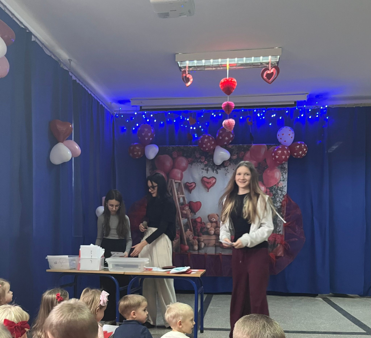 12 lutego w naszej szkole panowała wyjątkowa atmosfera. Z okazji Walentynek działała poczta walentynkowa, dzięki której uczniowie oraz przedszkolaki mogli przesyłać sobie miłe słowa i kartki. Nie zabrakło uśmiechów, życzliwości i dobrej energii. Po południu odbyła się również dyskoteka dla klas 4–8. Była świetna muzyka, tańce oraz wspólna zabawa w przyjaznej atmosferze. W przedszkolu dzień przepełniony był atrakcjami oraz pogadankami na temat znaczenia miłości i przyjaźni w naszym życiu. Przedszkolaki uczestniczyły w różnych zabawach. Dzieci przygotowały walentynkowe kartki dla wybranego przez siebie kolegi lub koleżanki, następnie wrzucały je do specjalnej skrzynki. Nie obyło się również bez pamiątkowej sesji zdjęciowej. Wspólna zabawa dostarczyła dzieciom wielu radosnych wrażeń.