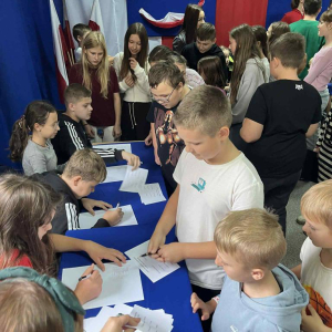 W dniu 23 września w naszej szkole odbyły się wybory do Samorządu Uczniowskiego. Było to dla całej społeczności szkolnej bardzo ważne wydarzenie, w którym uczniowie świadomie dokonują wyboru swoich przedstawicieli na cały rok szkolny. Wybory były poprzedzone kampanią wyborczą. Kandydaci do Samorządu Uczniowskiego przygotowali bardzo ciekawe i oryginalne plakaty przedstawiające najważniejsze punkty swojego programu. Głosowanie było tajne. Każdy uczeń naszej szkoły mógł oddać głos na swojego kandydata na przygotowanych kartach wyborczych. Głosami szkolnych wyborców Przewodniczącą Samorządu Szkolnego została uczennica klasy 8 Zuzanna Kowalska. Skład Samorządu Szkolnego: Zuzanna Kowalska - Przewodnicząca, Jan Słomian - Wiceprzewodniczący, Gabriela Słomian - członek Samorządu Szkolnego, Tymon Kęsik - członek Samorządu Szkolnego.