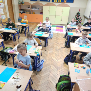Uczniowie klasy pierwszej z ogromnym zaangażowaniem realizują kolejne zadani e projektu: Adwent.