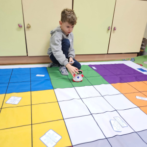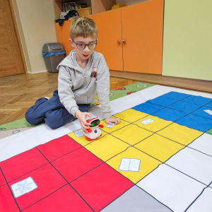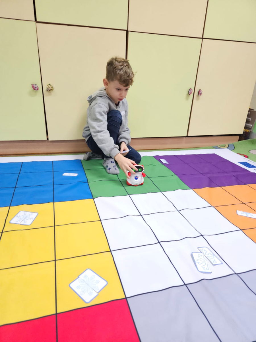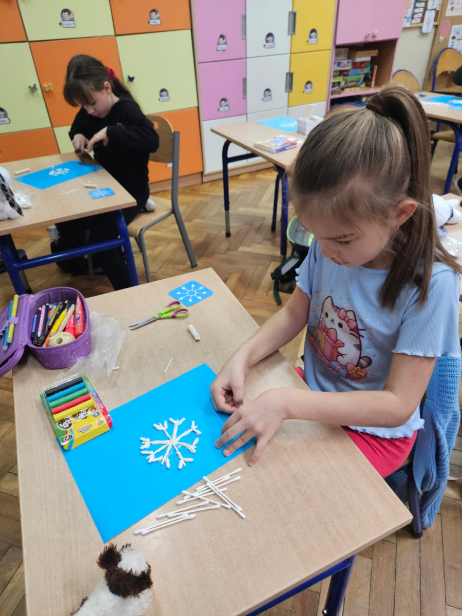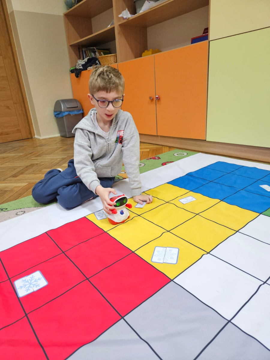 Pierwszoklasiści programowali robota, aby odnaleźć drugą część wylosowanego płatka śniegu oraz tworzyli własne płatki śniegu z plasteliny i patyczków, rozwijając kreatywność i wyobraźnię.