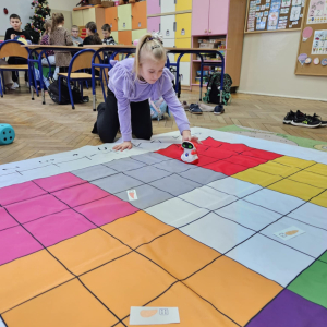 ⛄ Bałwankowy czas Uczniowie pracowali w grupach, rozwijając współpracę i logiczne myślenie. Za pomocą robota edukacyjnego: