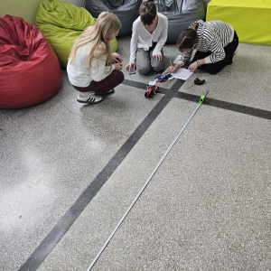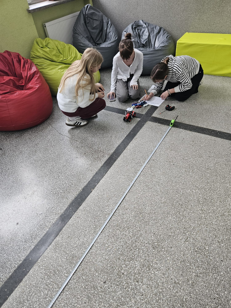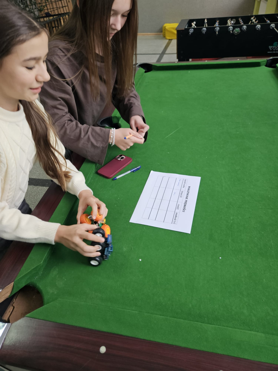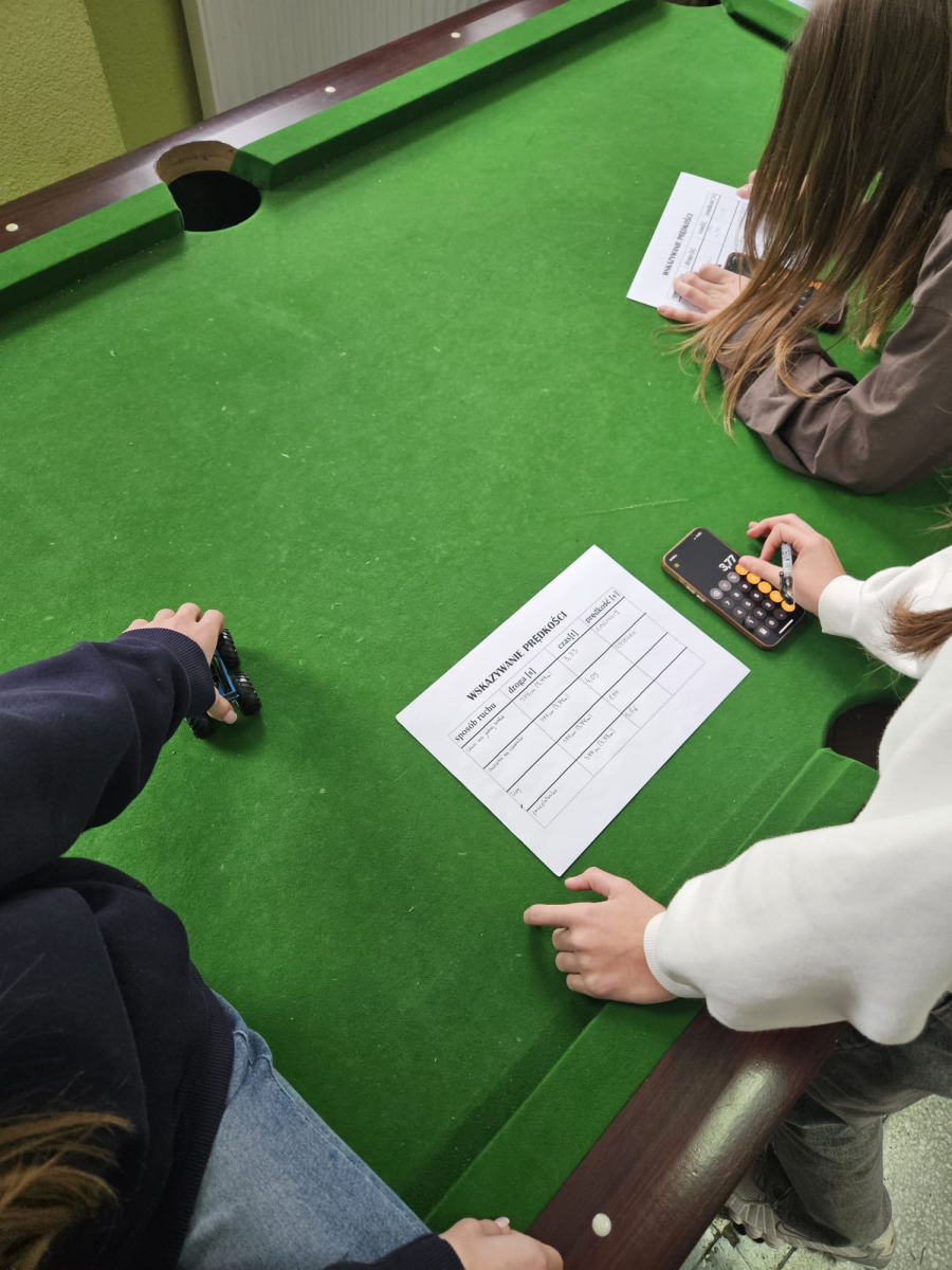 MODUŁ II - 2. KTO PIERWSZY TEN LEPSZY. Uczniowie klasy VII wyznaczali prędkość przy użyciu zabawe, a także różnych sposobów ruchu.