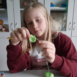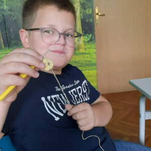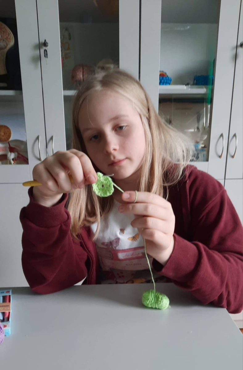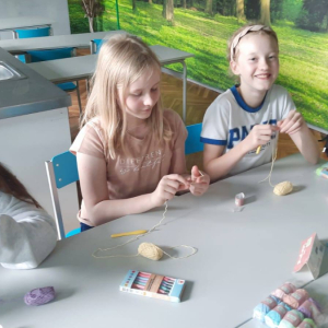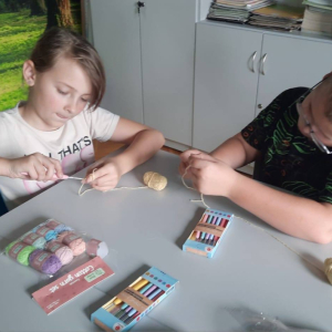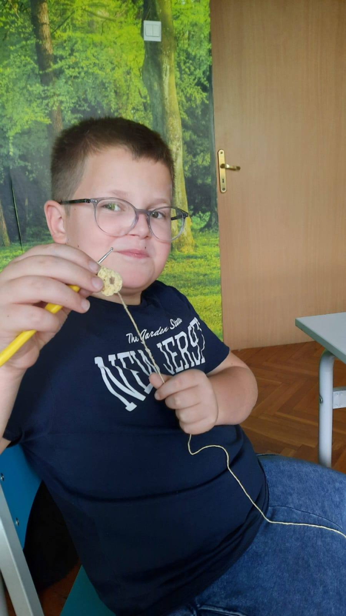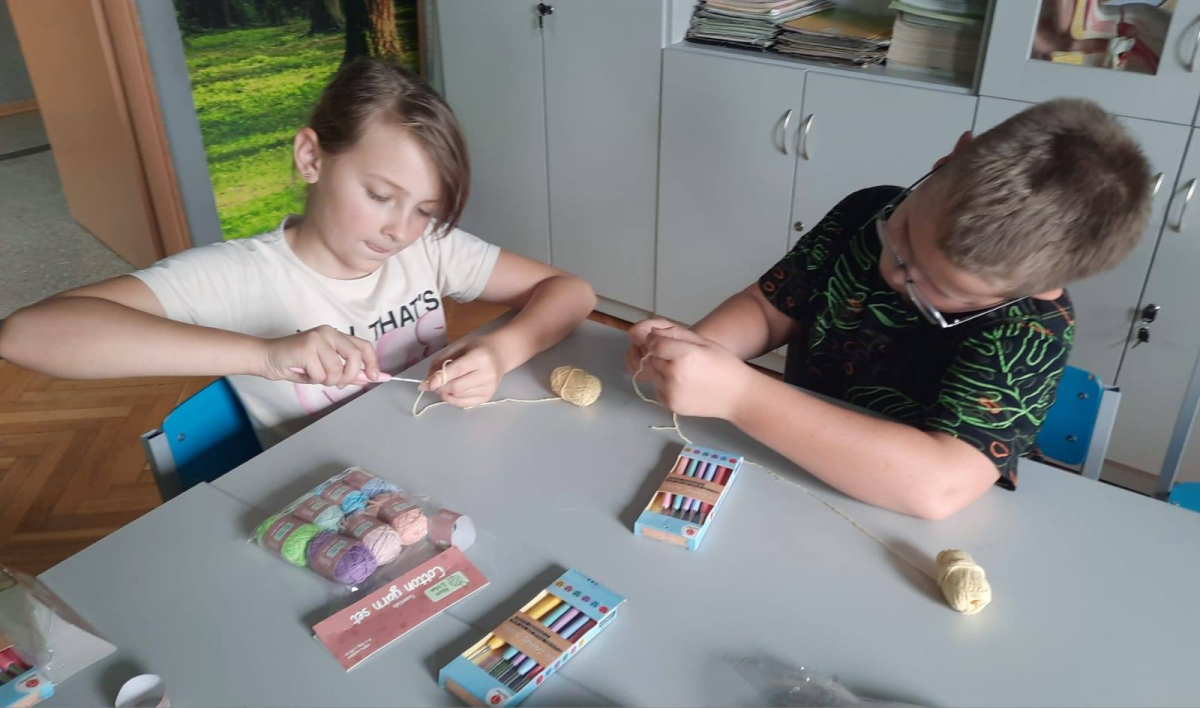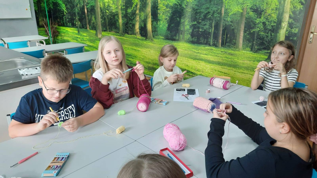 Zajęcia z szydełkowania. Za nami drugie zajęcia z rękodzieła, na których uczniowie poznali podstawy szydełkowania. Na początku zapoznali się z budową szydełka oraz sposobem trzymania go w dłoni. Następnie uczyli się wykonywać łańcuszek, czyli podstawowy element każdej robótki szydełkowej. Po opanowaniu tej umiejętności przeszli do nauki robienia półsłupków. Uczniowie ćwiczyli dokładność i cierpliwość, a także rozwijali zdolności manualne i koncentrację. Zajęcia przebiegły w miłej i twórczej atmosferze.
